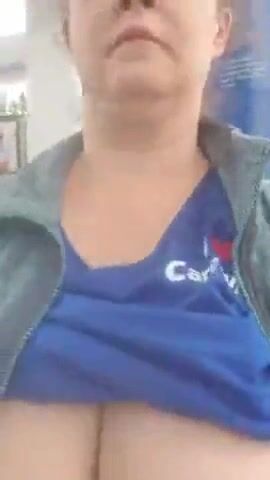 . Stephanie DeWolfe likes to flash her big tits while she's pumping gas.