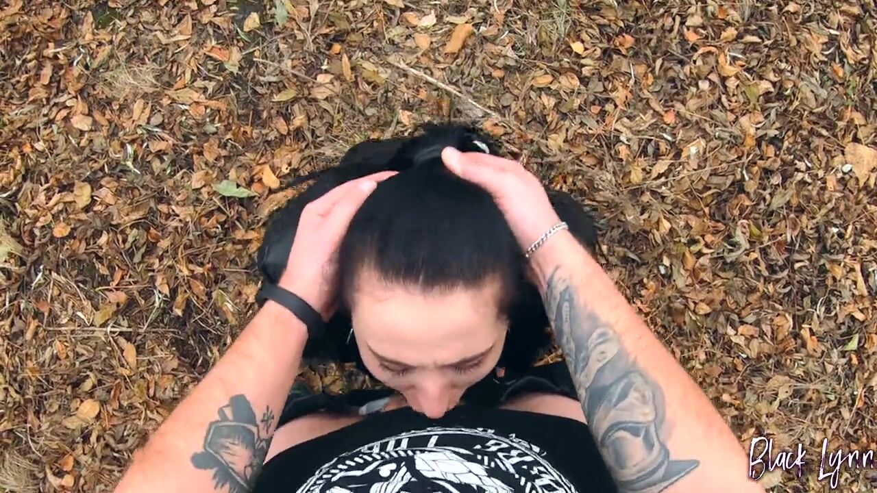 . This slut in leather leggings was made to suck big cocks and get a lot of cum on her face. I took her out to the woods to fuck her mouth the way I wanted. And after I enjoyed her mouth, I gave her a massive facial