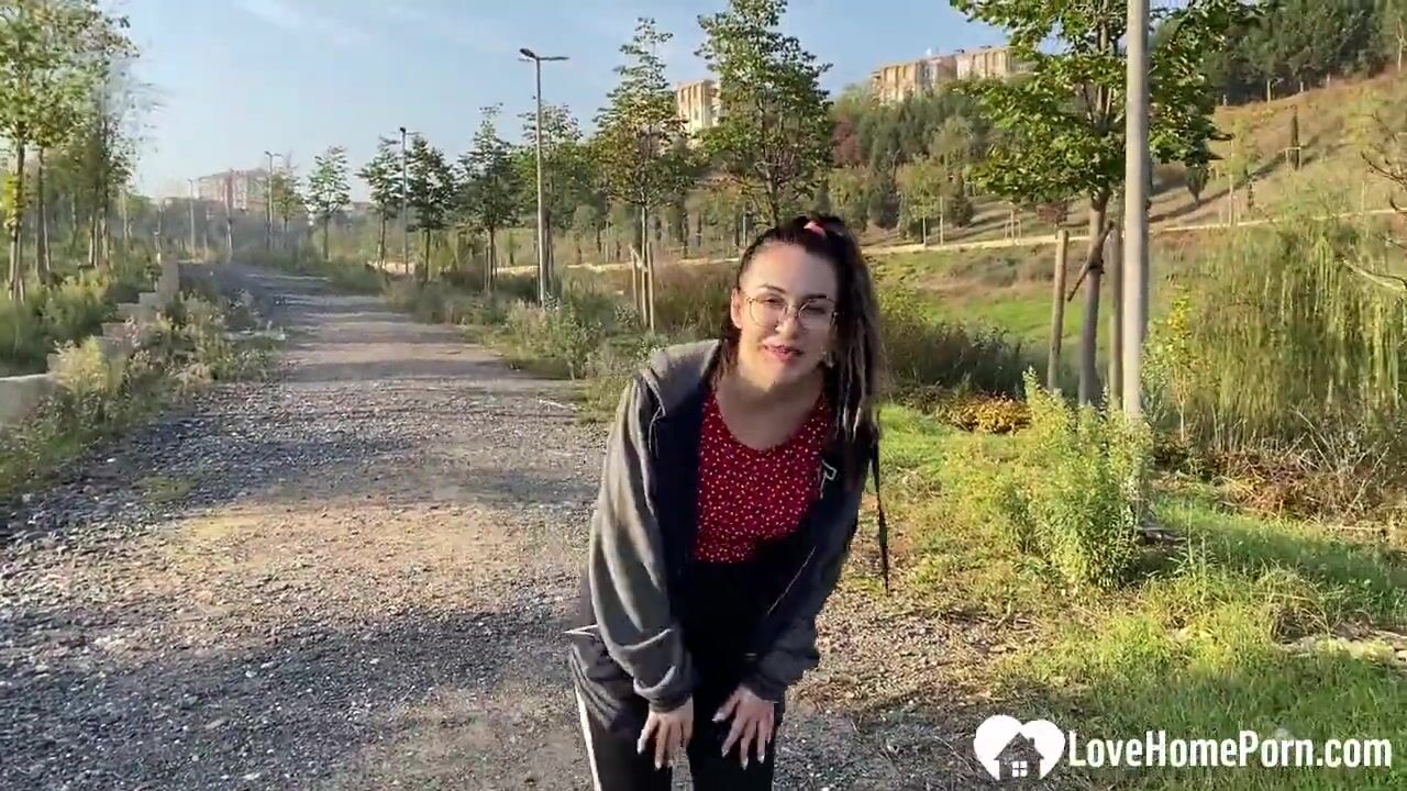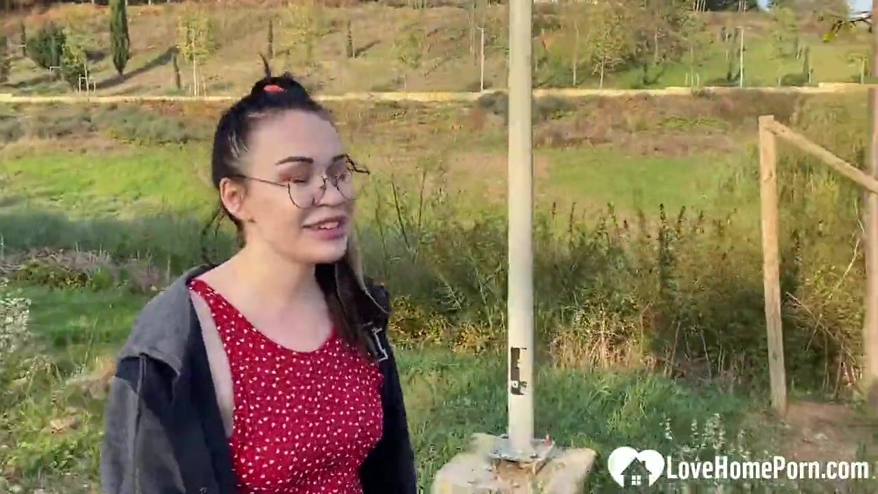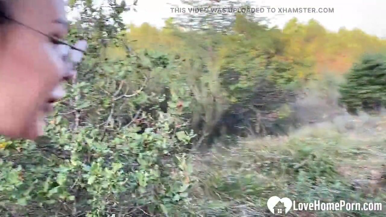 . Sexy babe with glasses needed a break from running so we fucked outdoors.