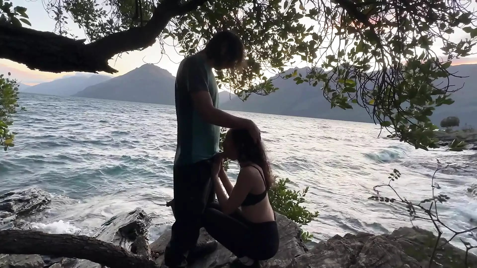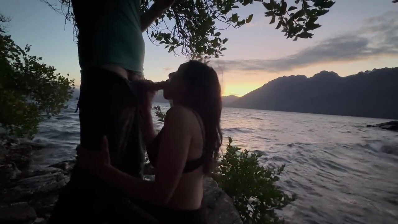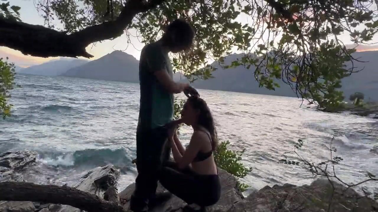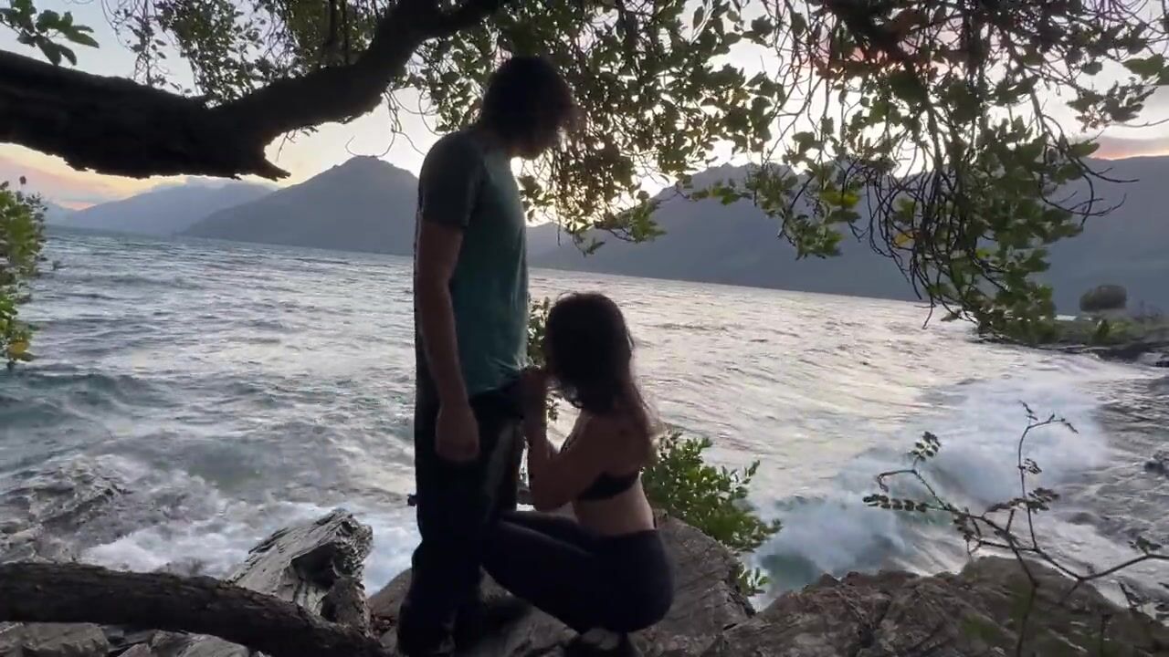 . Found a nice little spot by a mountain lake to fuck and suck, he came on my tits.