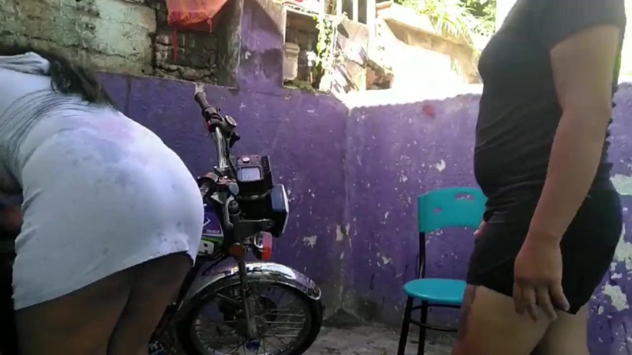 LESBIAN SEX AT THE OUTDOOR MOTORCYCLE WASH ENDS IN A CREAMY ORGASM