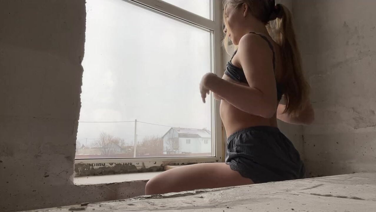 PUBLIC MASTURBATION BY THE WINDOW. WIFE SEDUCES PASSERS-BY