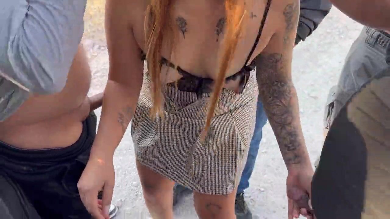 . Tiffany had a fantasy but it was very extreme, she wanted several strangers to fuck her in the street standing in line, she was embarrassed but she was so excited that she decided to take a risk and talked to several guys who were walking by, they began to fuck her one by one to fill her vagina with their cum.