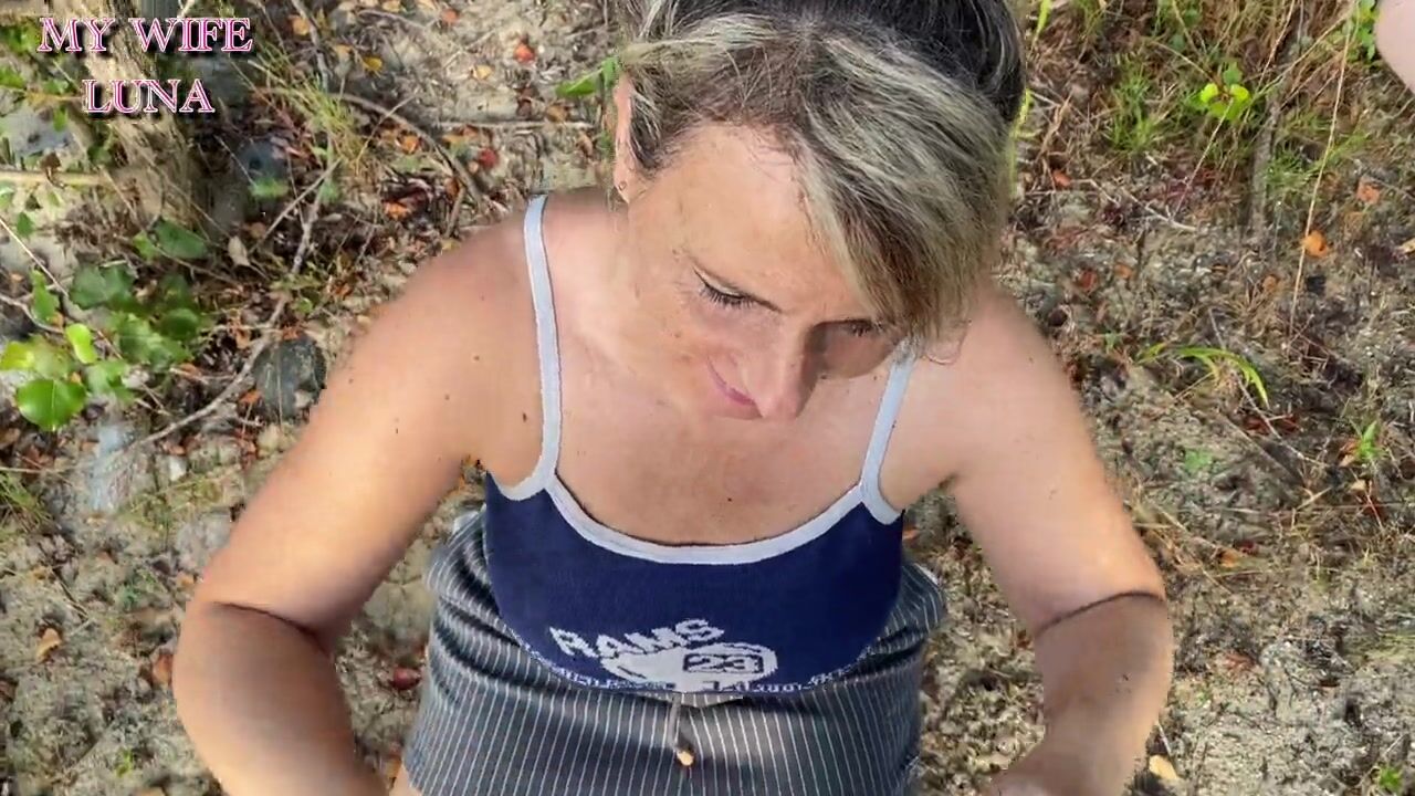 . We were walking and I felt like sucking my husband's big cock, he was happy and immediately slammed it in my mouth and then he fucked me doggy style until he sprayed all his cum on my face