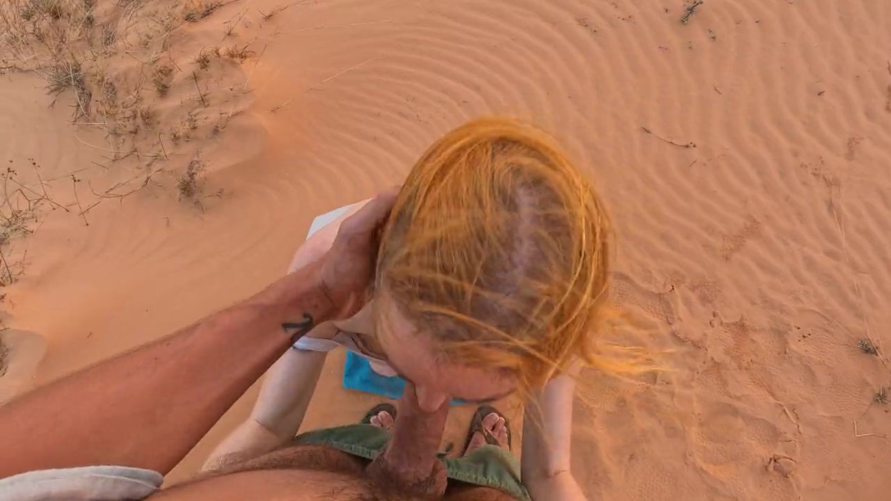 POV: SHE GIVES HIM A BLOWJOB ON A WALK THROUGH THE DESERT