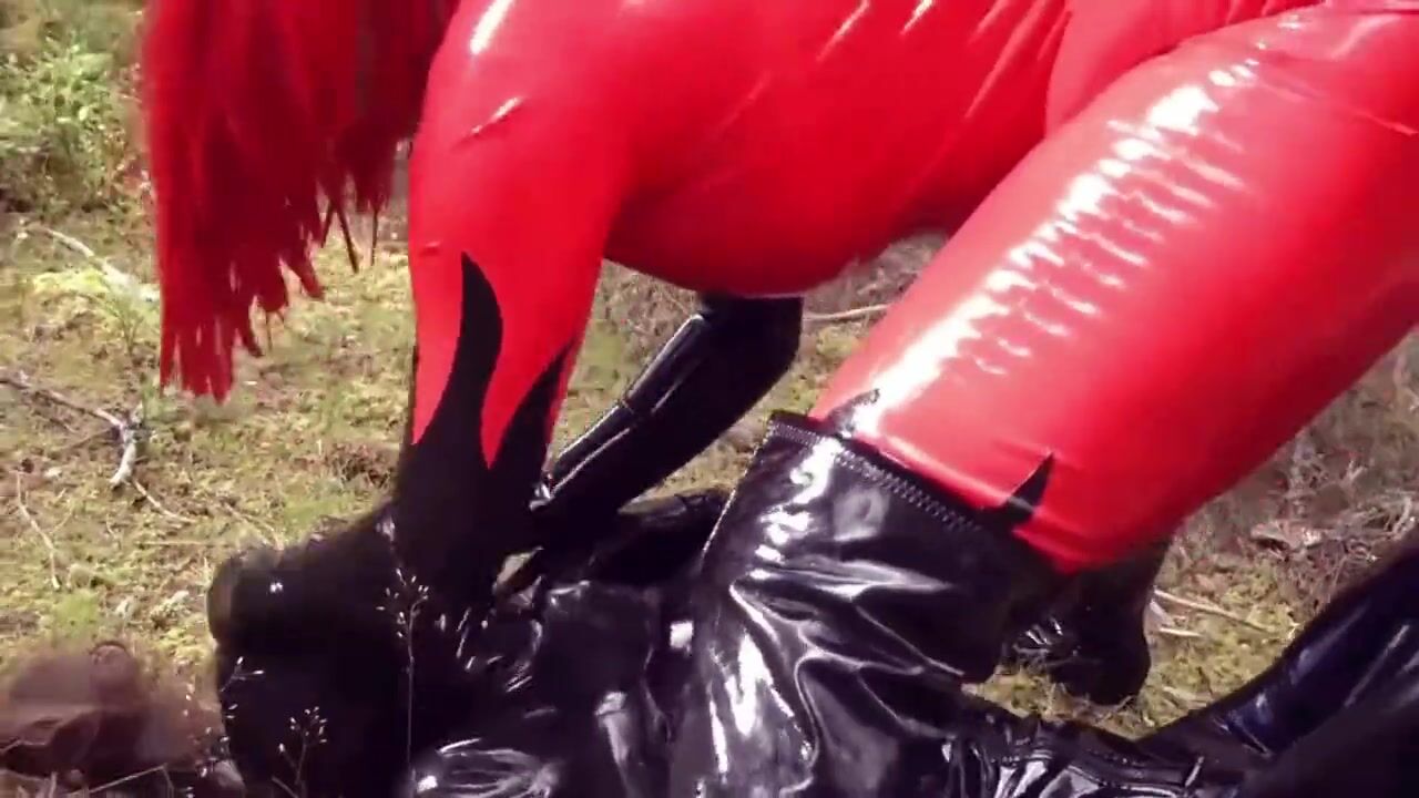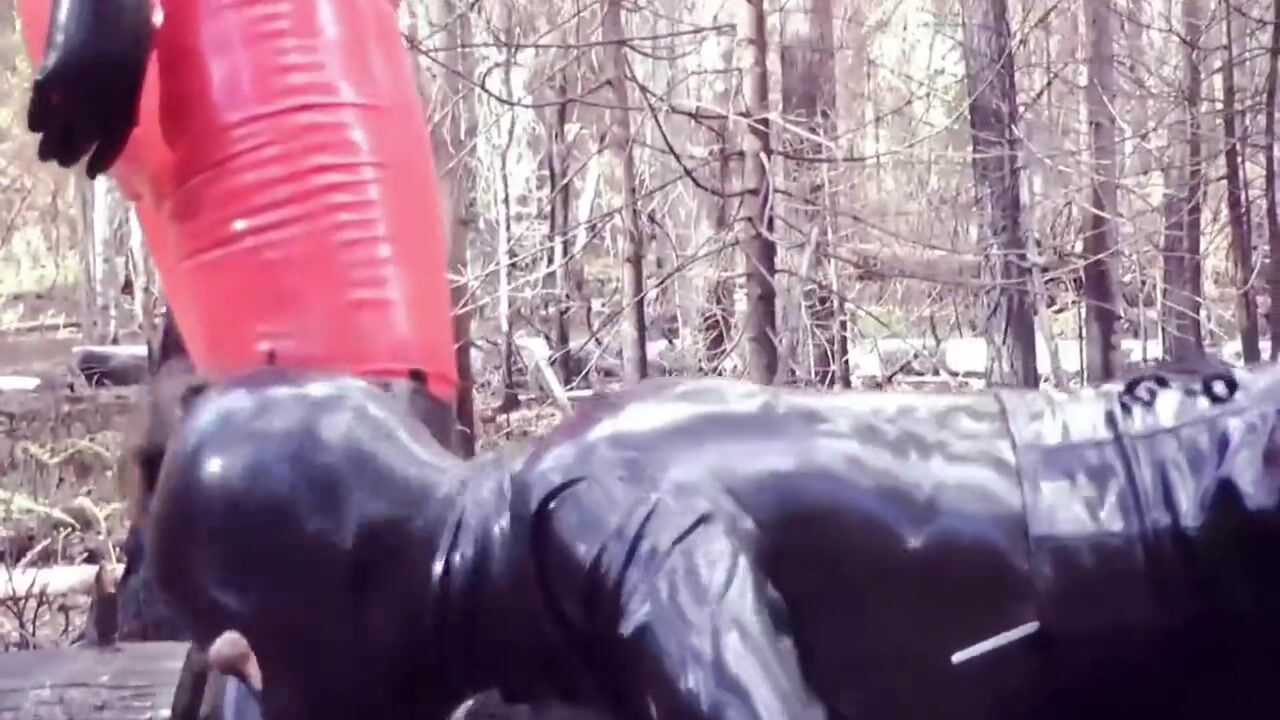FEMDOM HUMILIATION OUTDOOR: LATEX MISTRESS AND RUBBER SUBMISSIVE