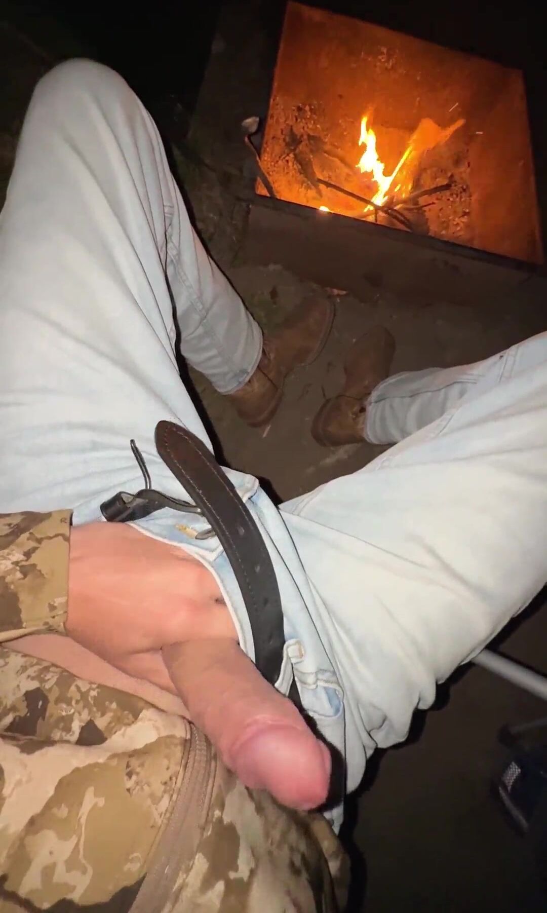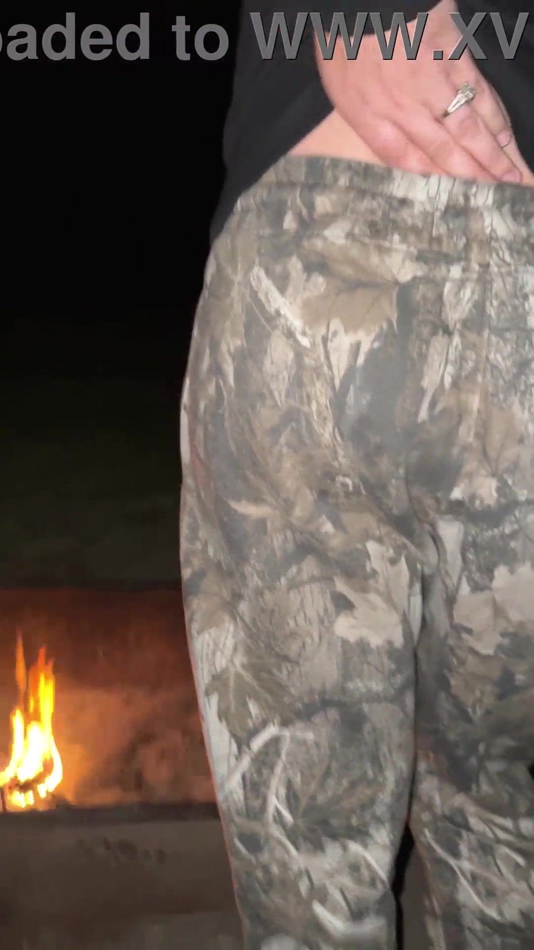 OUTDOOR FLASHING AND TEASING WET PUSSY BIG DICK AND A CAMPFIRE