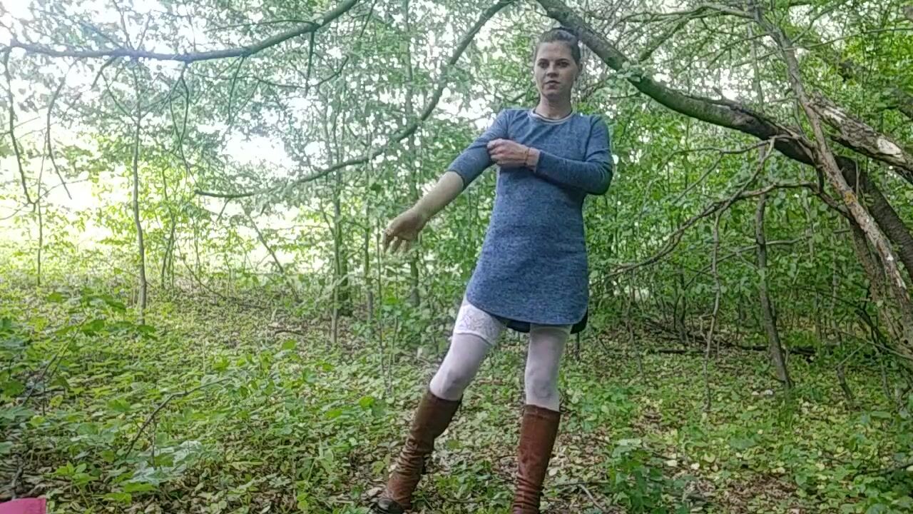 IN NATURE, CHANGES INTO STOCKINGS AND A DRESS, FUCKS HERSELF AND MAKES PISSING CLOSE-UP
